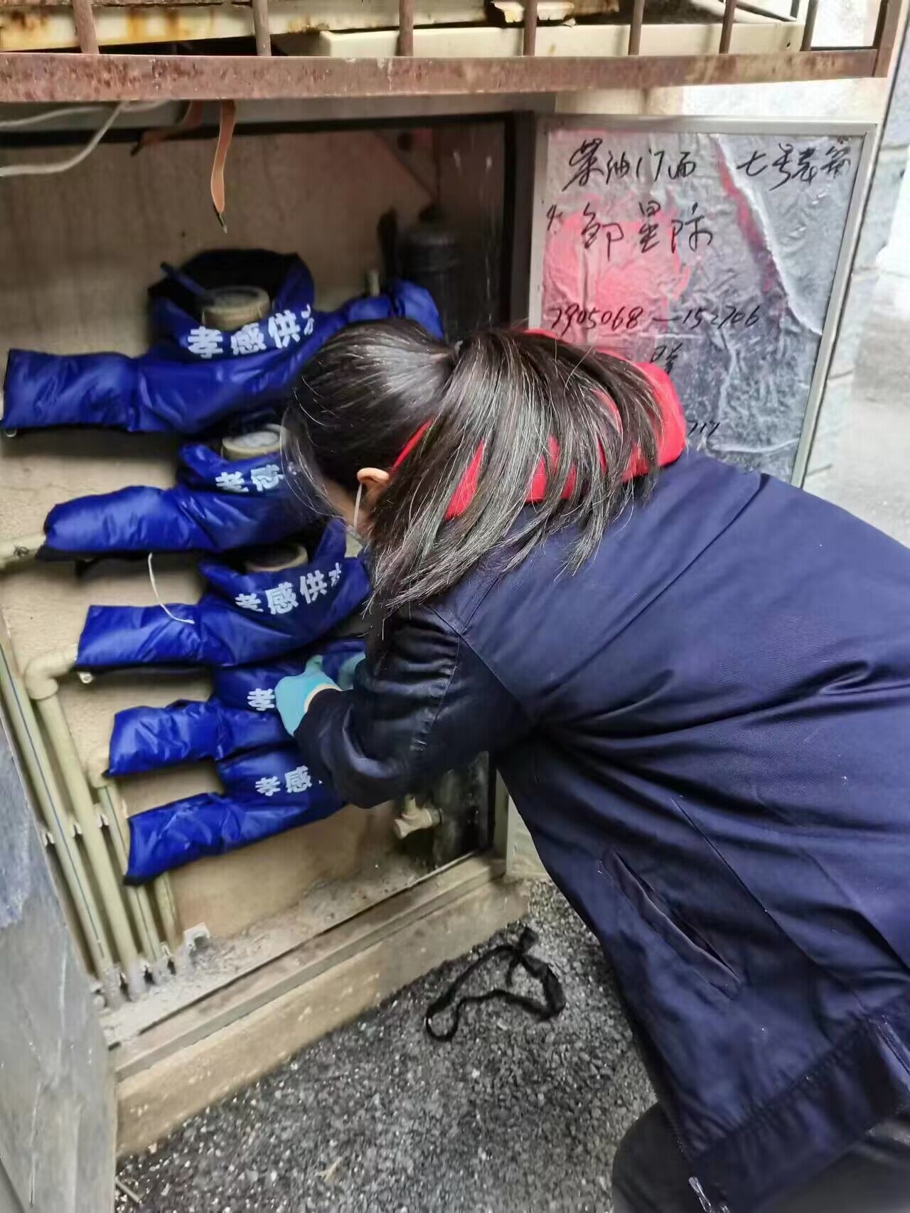 客戶服務(wù)部提前準(zhǔn)備了充足的保溫防凍物資,對供水設(shè)備、設(shè)施采取“穿衣戴帽”等方式,做好防凍保溫措施。對水表池、管道井和重點(diǎn)區(qū)位的公共供水管道進(jìn)行了普查和維護(hù)。并做好供水管網(wǎng)及消防栓的巡檢維護(hù),為易凍水管穿上了“棉衣”,對存在安全隱患的進(jìn)行維修和更換。
