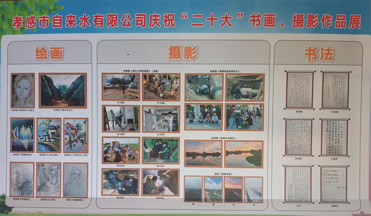 為全面學習宣傳貫徹黨的“二十大”精神,響應(yīng)澴川國投“獻禮偉大奮斗 墨繪改革國投”藝展活動,豐富職工文化生活,11月中旬,公司組織開展了慶祝“二十大”書畫、攝影藝術(shù)作品展征集活動。