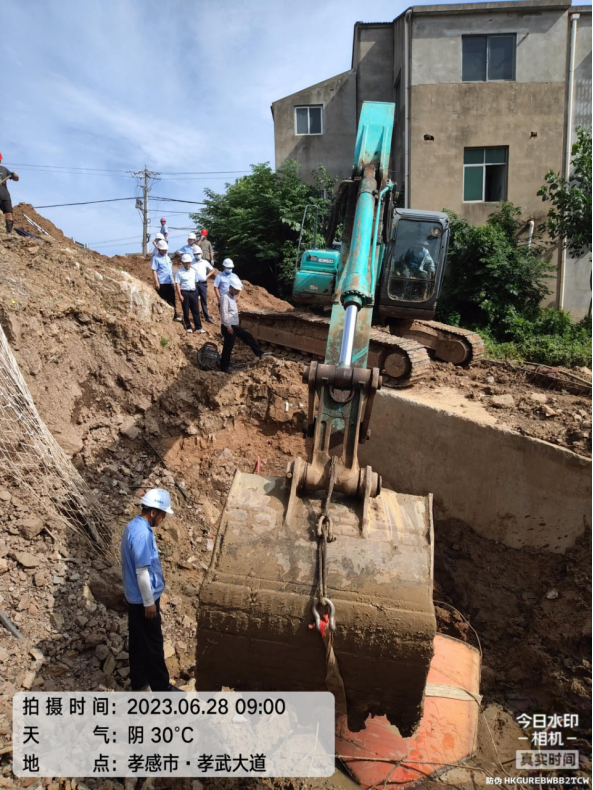 為確保供水主管碰接施工安全穩(wěn)妥推進,壓縮停水作業(yè)時間,將停水對城區(qū)高峰供水的影響降至最低,我公司多次組織技術(shù)信息部、工程管理部、運行維護部、應(yīng)急安全部等部門到現(xiàn)場勘察會商方案。根據(jù)最終確定的分解施工方案,6月28日早上8點,孝武大道城南大道供水管道碰接工程正式開始施工。