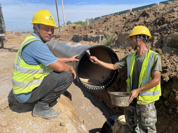近期我市出現(xiàn)持續(xù)高溫天氣,為加快推進(jìn)城市重點供水管網(wǎng)建設(shè),澴川國投暢泉公司的施工人員搶抓晴好天氣,緊鑼密鼓地加緊施工。