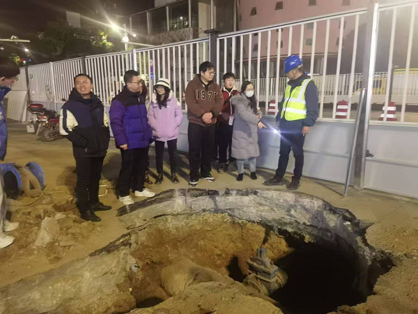 盡管寒風(fēng)凜冽,施工現(xiàn)場(chǎng)卻是一片繁忙景象,燈火輝煌。挖掘機(jī)械設(shè)備緊張作業(yè),工人們有序地進(jìn)行著供水管道連接前的準(zhǔn)備工作。設(shè)計(jì)造價(jià)人員仔細(xì)觀察,詳細(xì)記錄,并不時(shí)向現(xiàn)場(chǎng)施工人員和技術(shù)人員提出問(wèn)題,深入掌握施工流程和關(guān)鍵技術(shù)。