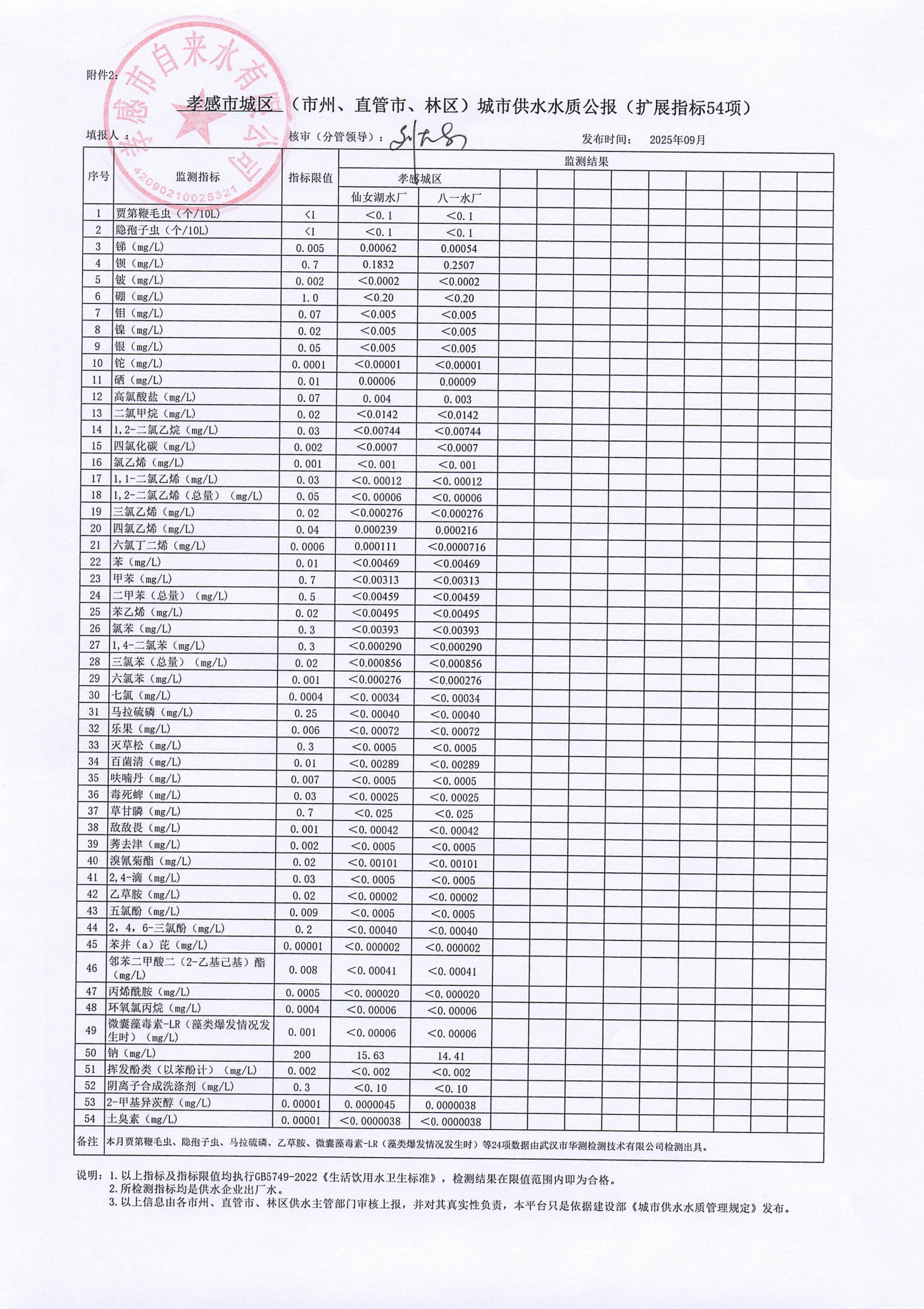 2025年9月水質(zhì)報告