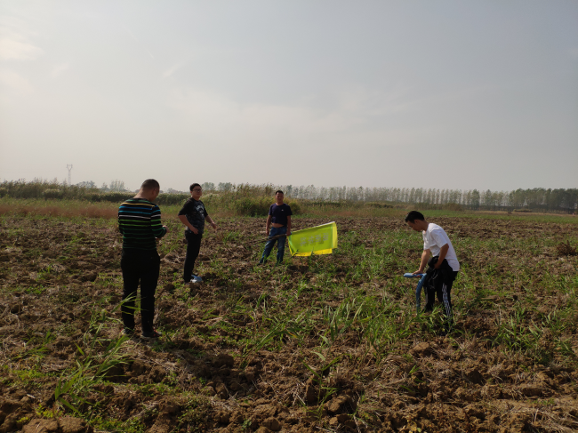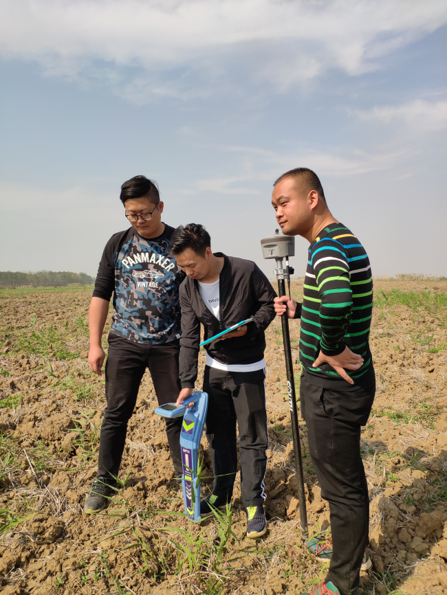 這一天的測量工作一直忙到下午4點(diǎn)才收工,算下來每個人都步行了上十公里。小伙子們的臉上雖然也是一臉灰塵和疲憊,但望著插滿彩旗的田野,大家踏著夕陽而返時,神情和話語里洋溢著掩不住的歡欣。