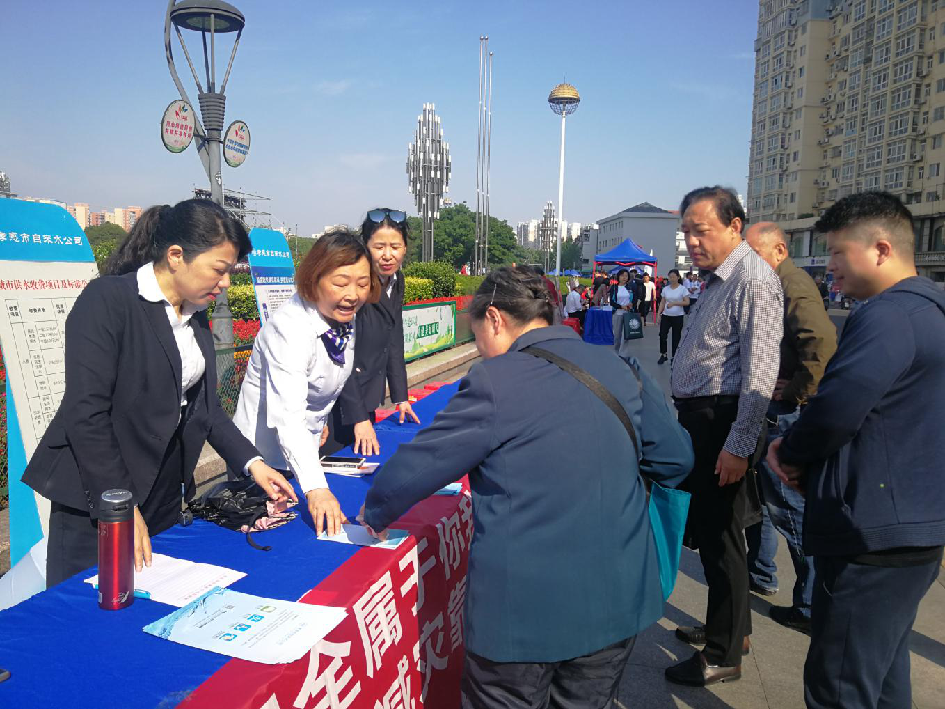 宣傳活動中,我公司通過擺放供水安全知識、防災(zāi)減災(zāi)知識展板、懸掛防災(zāi)減災(zāi)宣傳橫幅、發(fā)放宣傳資料300余份、組織現(xiàn)場咨詢等形式,向廣大市民講解我市供水形勢、供水節(jié)水小常識、供水便民服務(wù)政策、防災(zāi)減災(zāi)方式方法,提升居民的水資源節(jié)約意識和防災(zāi)減災(zāi)能力?;顒蝇F(xiàn)場氣氛熱烈,得到群眾廣泛參與,營造了“防災(zāi)事關(guān)你我他,減災(zāi)利國又利家”的輿論氛圍。