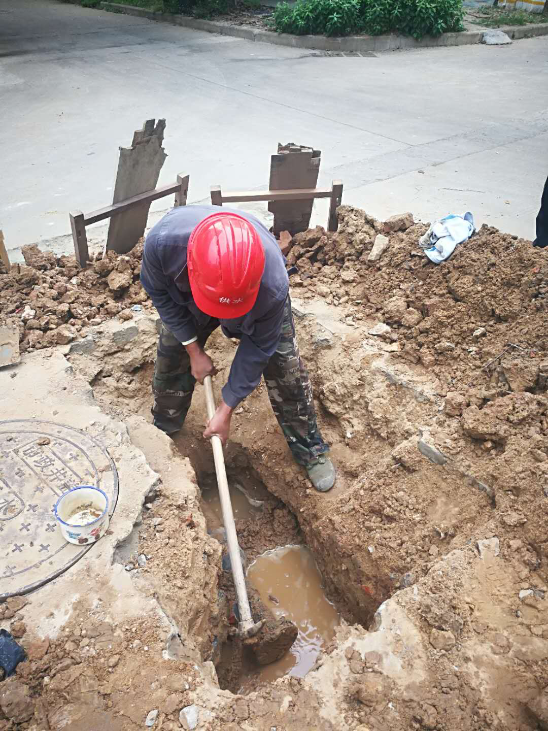 據(jù)了解,兵工花園小區(qū)于去年10月開始進(jìn)行“三供一業(yè)”管道改造,5月13日上午,我公司管安部門組織驗(yàn)收時(shí)發(fā)現(xiàn),該小區(qū)供水管網(wǎng)存在漏水現(xiàn)象。經(jīng)工作人員初步檢查,懷疑是小區(qū)內(nèi)部自有管道存在漏點(diǎn),后經(jīng)定點(diǎn)查勘,確認(rèn)為是小區(qū)內(nèi)部PE110轉(zhuǎn)63管道預(yù)留口堵板處漏水。此前,應(yīng)小區(qū)業(yè)主要求,我公司進(jìn)行“三供一業(yè)”管網(wǎng)改造時(shí),對該小區(qū)部分原有供水管道予以保留。此次驗(yàn)收試壓發(fā)現(xiàn)小區(qū)部分自有管道存在老化破損漏水現(xiàn)象。按規(guī)定,這種情況應(yīng)由小區(qū)自行處理,秉著為人民服務(wù)的理念,我公司主動(dòng)承擔(dān)社會(huì)責(zé)任,根據(jù)現(xiàn)場的管道漏水情況,制定維修方案。對漏水點(diǎn)開挖、抽排水、更換墊片、封堵漏點(diǎn),經(jīng)過了3個(gè)多小時(shí)的緊急維修,最終圓滿的解決了該小區(qū)管道漏水問題。
