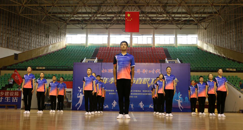 6月26日,2019孝感市市直職工運動會“工間操”比賽項目在體育館如期舉行。上午8點30分,來自市直機關(guān)的26支代表隊共計400多名隊員參加了此次比賽。
