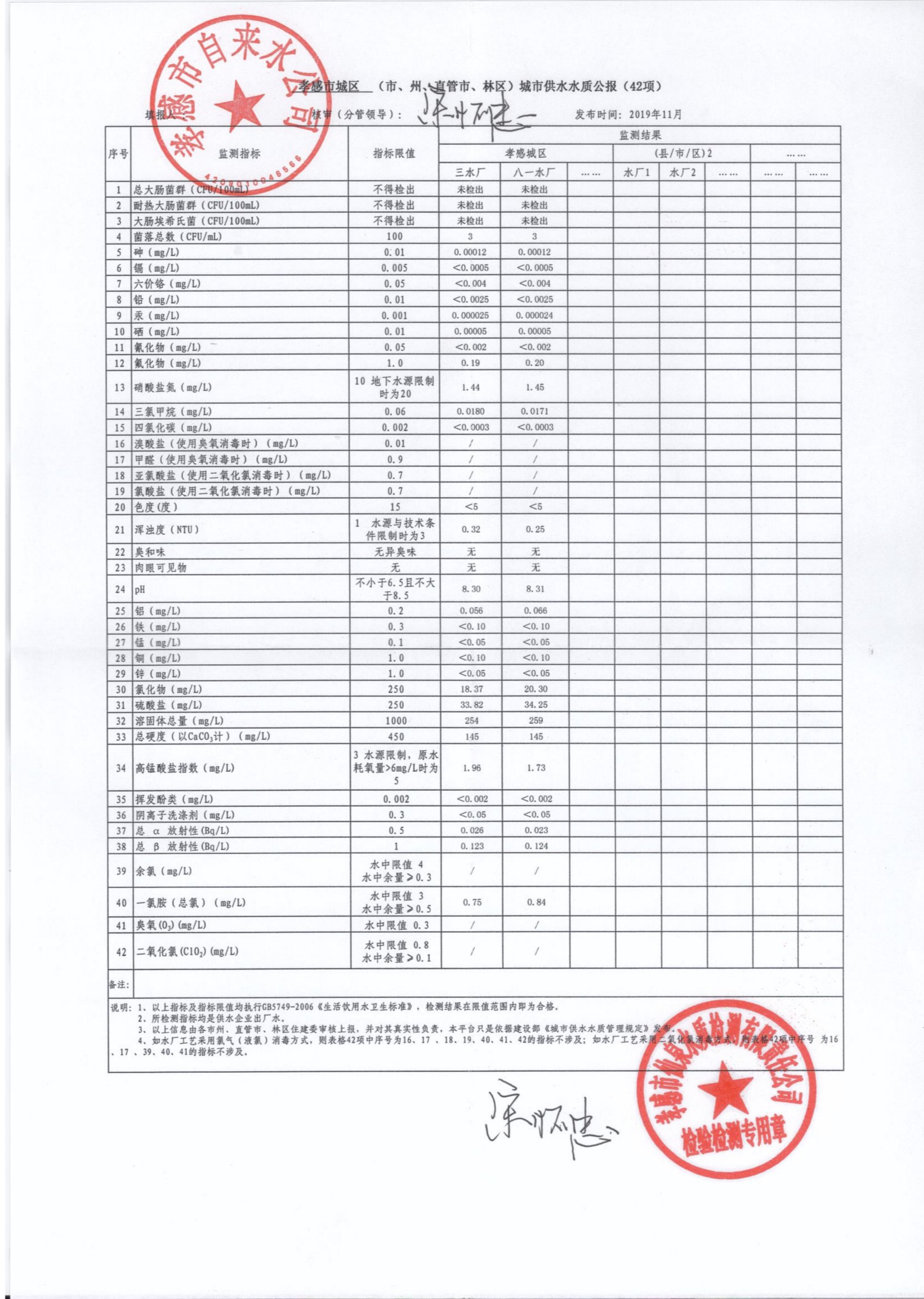 2019年11月水質(zhì)報告