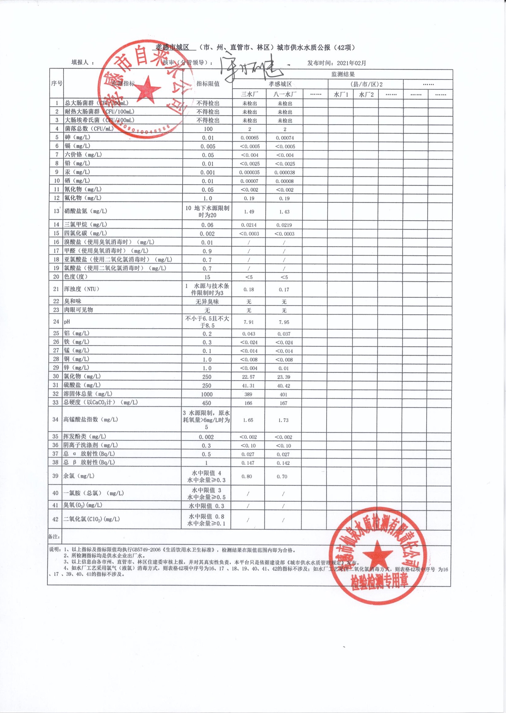 2021年2月水質(zhì)報(bào)告